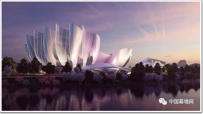 建筑形態取鳳凰翎羽之意,同時結合順德市花白蘭花之形,兩者相合而成。