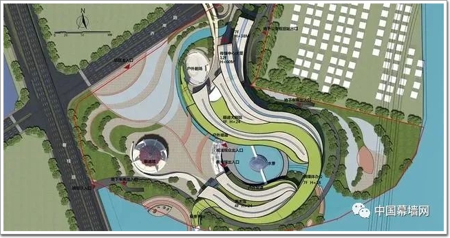 依托著項目的獨特構思,設計在建筑立面上形成極其豐富的層次,同時融入一條立體生態坡道,由人行天橋開始,連接下沉廣場及地下公交樞紐,又延伸到建筑裙房屋面的配套用房,大劇院的多功能廳及音樂廳,在觀眾觀演后,可在此做疏散通道,悠閑漫步。