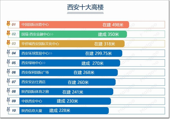 從最早的高新錦業路板塊到高新中央創新區,從曲江雁翔路到高鐵新城,從港務區的超高層集群到西咸的能源金貿區、灃東大道……隨著西安城市的不斷發展,超高層幕墻項目也逐步遍地開花,盡管有很多都是”在建”狀態!