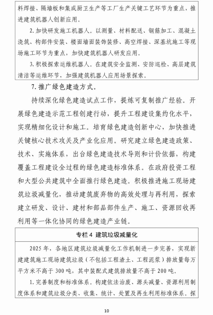 積極推進施工現(xiàn)場建筑垃圾減量化,探索建立研發(fā)、設(shè)計、建材和部品部件生產(chǎn)、施工、資源回收再利用等一體化協(xié)同的綠色建造產(chǎn)業(yè)鏈。
