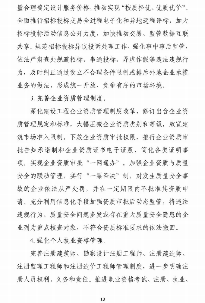 深化建設(shè)工程企業(yè)資質(zhì)管理制度改革,修訂出臺企業(yè)資質(zhì)管理規(guī)定和標準,大幅壓減企業(yè)資質(zhì)類別和等級,放寬建筑市場準入限制。
