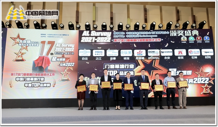 新流量下的TOP10|2022年3月10日,在廣州南豐國際會展中心3樓大宴會廳,“2021-2022年度第十七屆AL-Survey門窗幕墻行業(yè)年度大型讀者調(diào)查暨‘我最喜愛幕墻工程’評選活動(dòng)”頒獎(jiǎng)儀式隆重舉行。陶氏憑借創(chuàng)新力、創(chuàng)造力、市場數(shù)據(jù)、發(fā)展?jié)摿Φ染C合評定,榮獲“中國門窗幕墻行業(yè)首選品牌獎(jiǎng)”。
