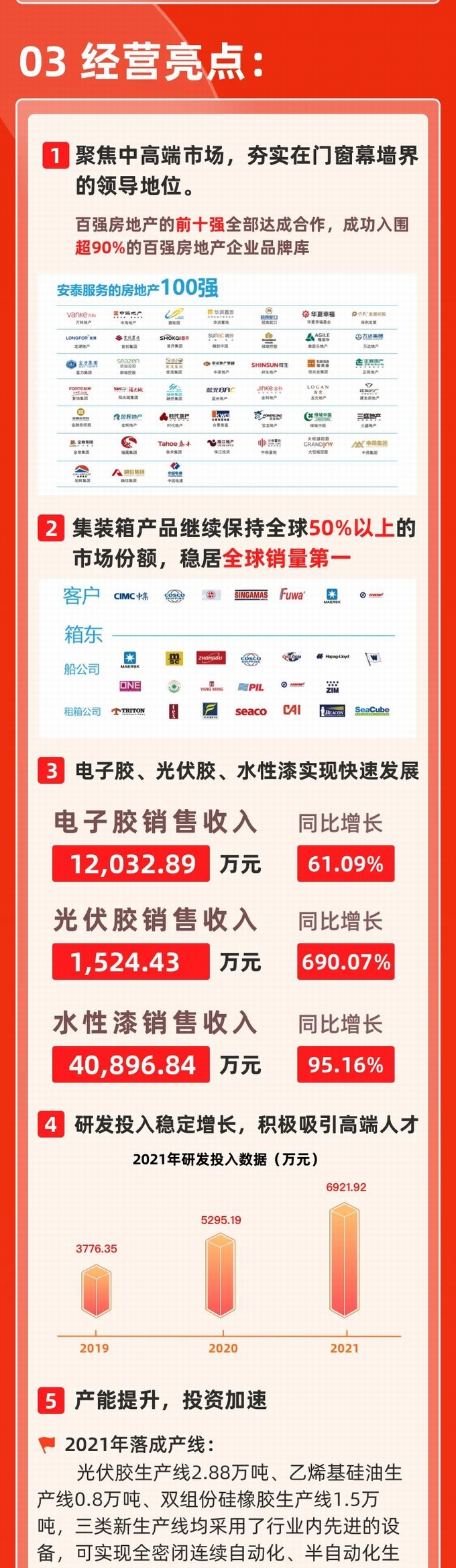 剛剛過去的2021年,是極其特殊的一年,隨著原材料價格的大幅波動,集泰交出了一份——產值穩定增長,利潤同比下降,而前景卻依然遠大的“特殊答卷”。堅持才有成就,付出才得未來,無論何時何地“安泰膠”都不用劣質原材料,不惡意市場炒作,堅守道德底線,用優良的產品和優質的服務,贏得社會和行業的認可。
