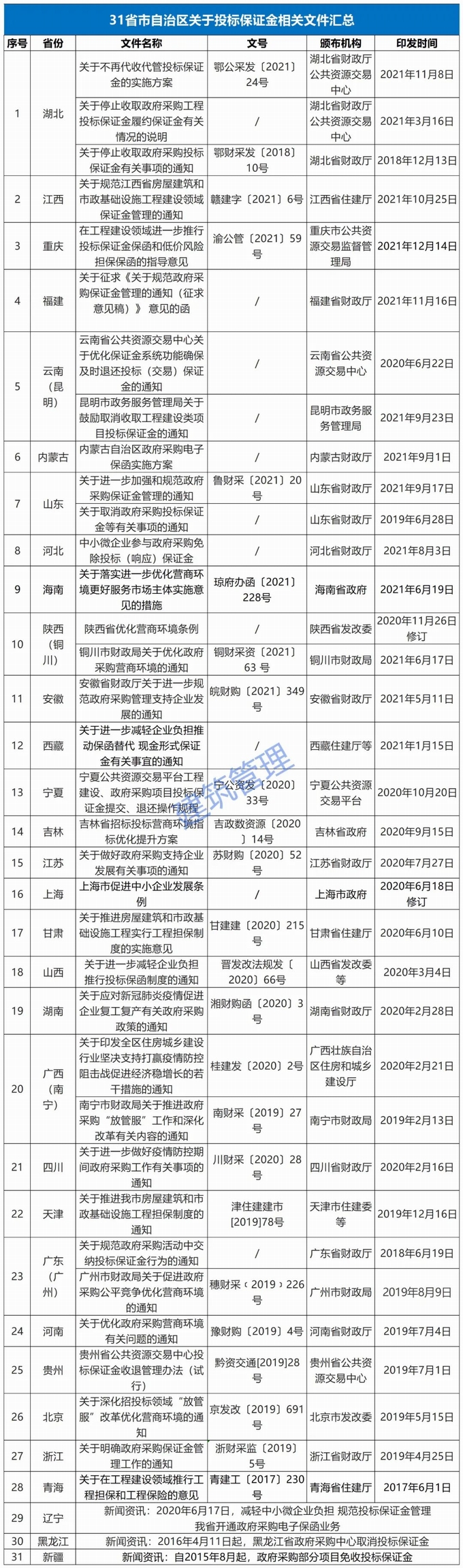 31省市關于投標保證金政策匯總
