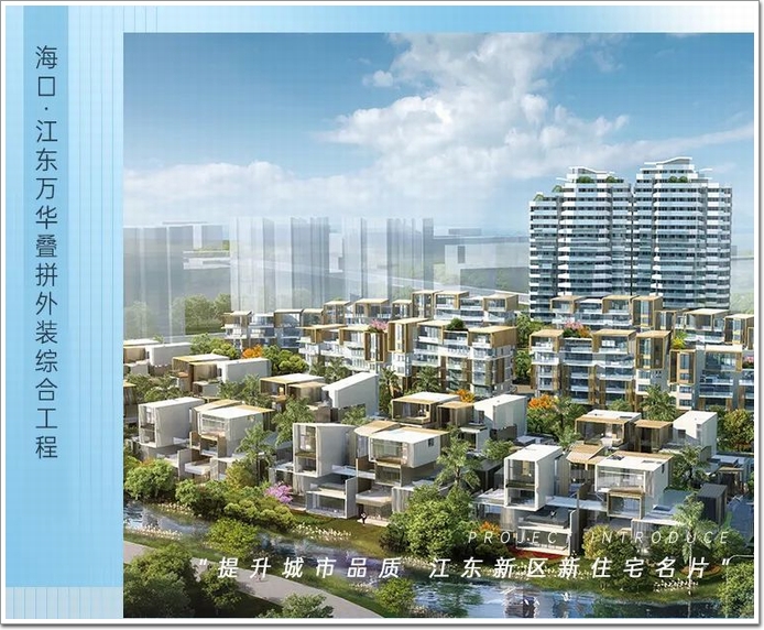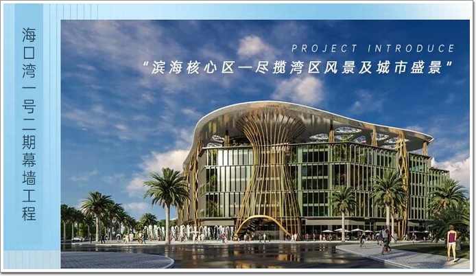 項目位于海南省?谑薪瓥|新區,東北臨瓊州海峽,西南臨江東大道,幕墻工程量約40000㎡幕墻高度為99.65米,工程幕墻玻璃采用雙夾膠中空超白玻璃,屬海南地區首個采用折線型單元式幕墻系統工程,根據海南氣候特性,所有開啟 扇和固定板塊均采用汽車專用發泡膠條,有效提升防水(詞條“防水”由行業大百科提供)性能,同時起到優良的隔音(詞條“隔音”由行業大百科提供)、節能等效果。建成后將成為集商業街區、酒店、高端商務中心為一體的大型商業綜合體,助力海南自由貿易港建設。