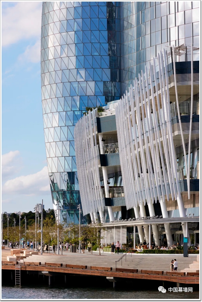 One Barangaroo就像一幅可以居住的藝術品,與周圍許多規規矩矩的長方形建筑形成鮮明對比,而融入這座城市港口的背景。建筑的幕墻以其輕盈感,讓云端豪宅聳立于世,玻璃外表皮構建出自由流動的空間,項目中所使用的玻璃全部由來自中國的信義玻璃提供。而室內裝飾則以大地色為主,營造出高雅迷人的氣息。