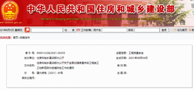 住建部《關于全面加強房屋市政工程施工工地新冠肺炎疫情防控工作的通知》