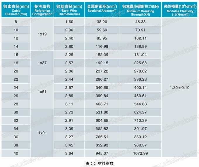 根據拉索廠家提供索規格及參數如表2-2所示。不銹鋼膨脹系數為1.67(1/℃)。