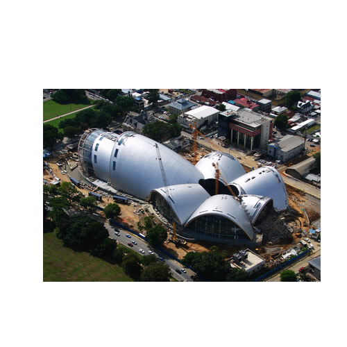 最新圖片顯示,正面玻璃幕墻已完成,一百多米高的塔冠桅桿也近乎完成!建筑的外立面設計為鉆石形玻璃刻面,以象征馬來西亞人的多元化。