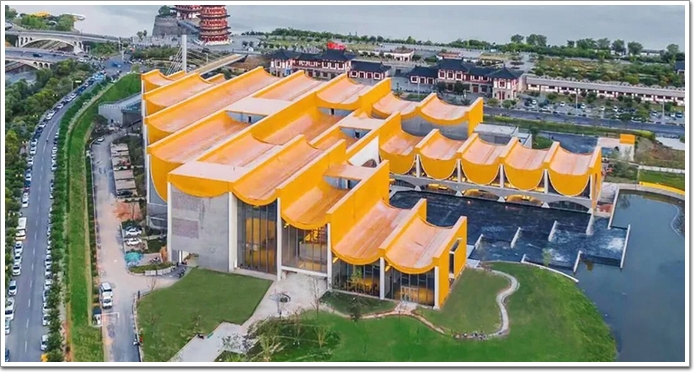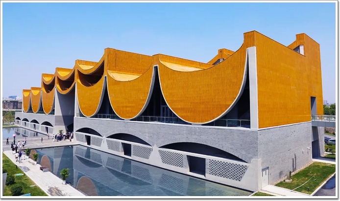 隋唐大運河文化博物館由同濟大學(xué)建筑與城市規(guī)劃學(xué)院設(shè)計,整體以“運河源、隋唐韻、河洛技”為設(shè)計理念,最吸引人眼球的是位于頂部的一排垂直于地面的倒拱形外立面。在設(shè)計之初,設(shè)計師從水利工程中提取拱形元素作為建筑的基本架構(gòu),讓一道道拱形的結(jié)構(gòu)支撐起一座宏偉的建筑,也撐起人們對運河文化遺產(chǎn)的歷史記憶和想象空間。
