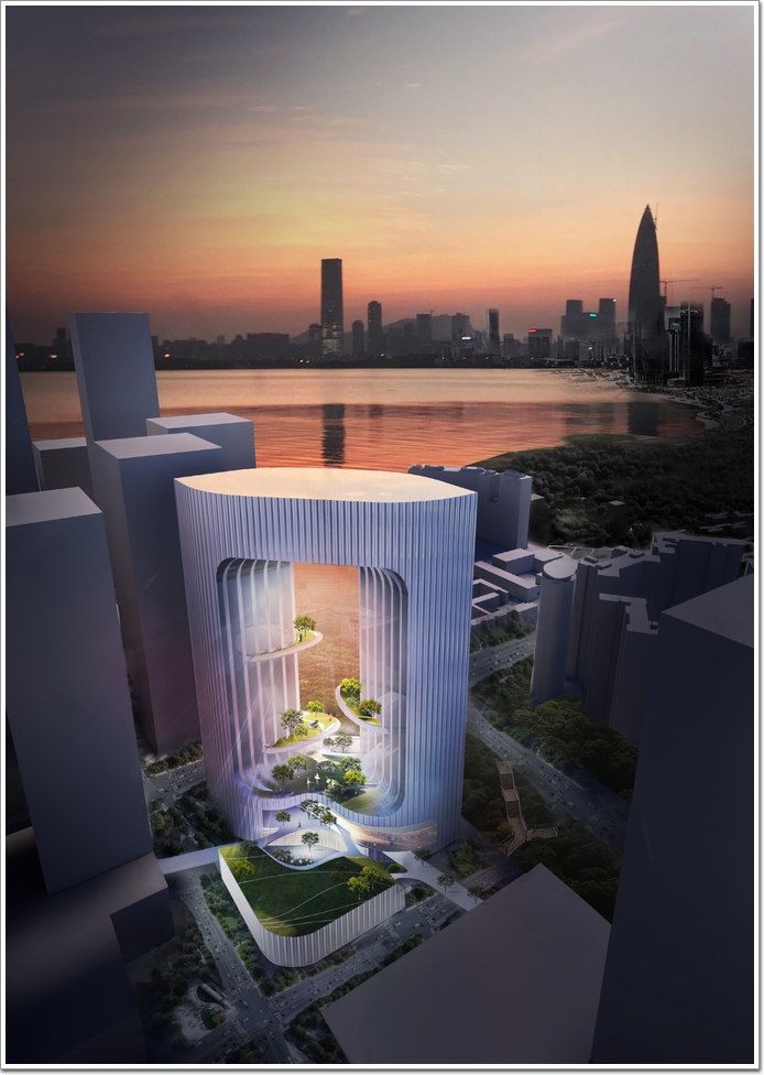 方案充分利用海景資源,實現景觀價值最大化,使總部大腦領導力中心可俯瞰整座城市;總部辦公分為兩個部分,高效的同時被公共配套環串聯,形成最大的交流與共享空間;城市客廳集文化、商業、藝術展廳、社會元素為一體,大型快速扶梯及小巷穿梭其中。