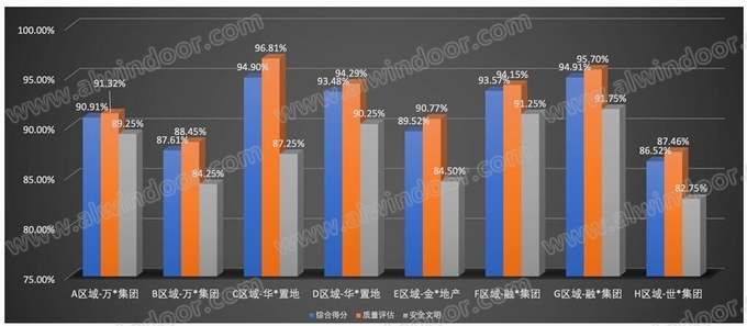 行業(yè)內(nèi)部分地產(chǎn)公司區(qū)域級(jí)項(xiàng)目幕墻門(mén)窗工程評(píng)估得分現(xiàn)狀