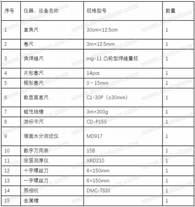 本表所列儀器均符合行業(yè)相關(guān)計(jì)量或認(rèn)證標(biāo)準(zhǔn),并滿足現(xiàn)場(chǎng)幕墻檢測(cè)需要,測(cè)量數(shù)據(jù)準(zhǔn)確、可靠。