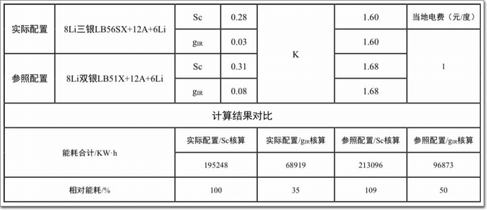 從電耗總量對比來看,用gIR替代Sc后,無論用何種Low-E(雙銀或者三銀),總電耗都將有50%以上降幅。