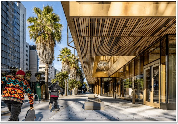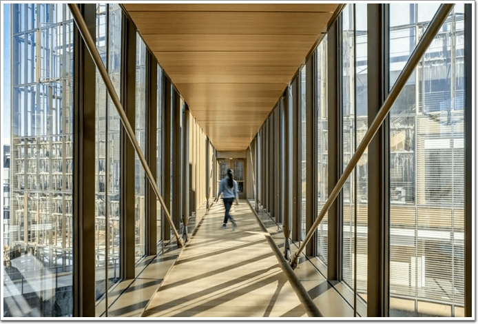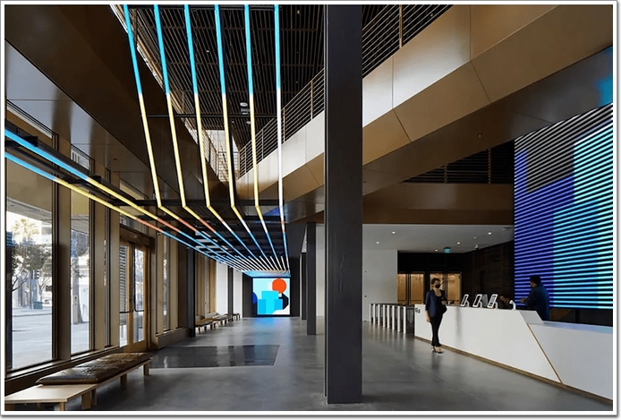 總部大樓的另一處亮點是建筑團隊稱之為「the Commons」的半室外公共廊廳空間,其既不屬于室外也不屬于室內,是人行道的活力延伸。