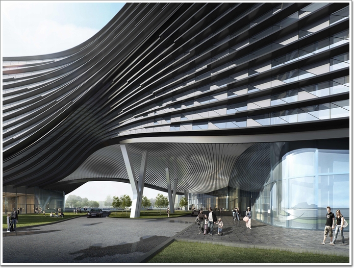 幕墻特點:由5座主樓,劇院以及中庭(詞條“中庭”由行業(yè)大百科提供)穹頂組成。包含單元式玻璃幕墻,鋁板幕墻以及鋁板/鋁材裝飾線,裝飾性鋁板及大面不銹鋼(詞條“不銹鋼”由行業(yè)大百科提供)等。
