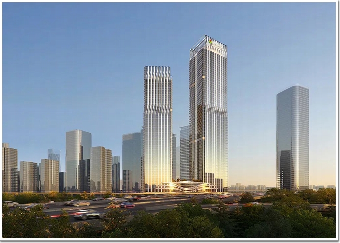 裙房(詞條“裙房”由行業大百科提供)如大鵬展翅,迎賓千里,通過動感的流線型設計,與塔樓立面彼此呼應,勾勒出騰飛躍起的入口形象,成為助力武漢經濟騰飛的“希望之翼”。