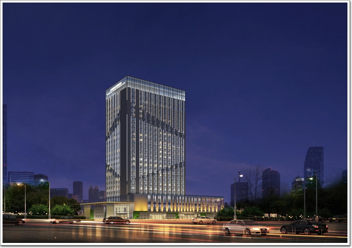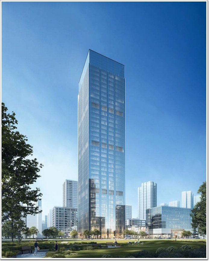 幕墻面積:49588㎡;總的建筑面積8.8萬平方米;共計35層,總高度157.8米,地下3層。