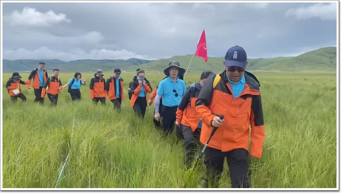 2022年7月17日,硅寶一行身著統一服飾,整裝待發,來到了紅原。這是由周恩來總理親自命名的地方,以紀念紅軍長征走過的大草原——紅原。日干喬大沼澤位于紅原縣瓦切鄉、麥洼鄉、色地鄉并延伸至若爾蓋,面積約為250萬畝,海拔 3300--3500米之間,泥潭密布,氣候無常,被稱為陸地上的“死亡之海”。 在穿越大沼澤的途中,因糧食、藥品奇缺,許多紅軍戰士因饑餓、寒冷、傷病而長眠在這片草地,茫茫草地,一望無涯,遍地是水草。這一次,硅寶人將再次挑戰自我,穿越沼澤地。在士氣滿滿的出征儀式后,大家一起踏上穿越之路。