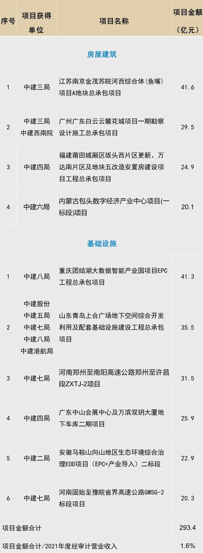 重大項目公告(2022年6月公布)