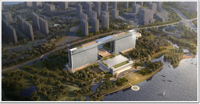 蘇州環(huán)秀湖國際會議酒店坐落于蘇州高鐵新城環(huán)秀湖東岸,漕湖大道以南、相融路以西,定位為具有國際水準的“蘇州論壇”永久會址。占地面積約為18萬平方米,總建筑面積約28萬平方米,可承辦國際國內(nèi)商務(wù)會議,是富有現(xiàn)代江南水鄉(xiāng)特色、生態(tài)節(jié)能智慧的五星級大型國際會議酒店。