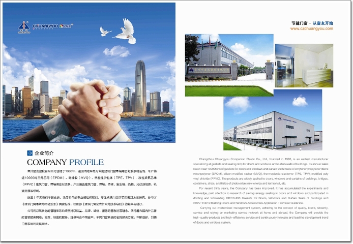 常州窗友塑膠有限公司創(chuàng)建于1988年,主要產(chǎn)品有三元乙丙(EPDM),硅橡膠(詞條“硅橡膠”由行業(yè)大百科提供)(MVQ),熱塑性彈性體(TPE、TPV),改性聚氯乙烯(PPVC)建筑門窗、幕墻用密封膠條,產(chǎn)品涵蓋建筑門窗系統(tǒng)、幕墻、橋梁、集裝箱、船舶、光伏新能源(詞條“新能源”由行業(yè)大百科提供)、軌道交通等領(lǐng)域。