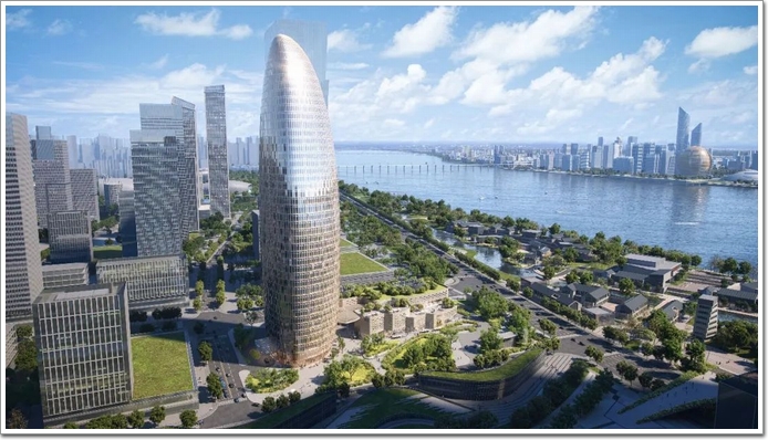 項目由Gensler事務所設計,“G”家除了掌握嫻熟的“流線型”現代高層建筑設計功底,更表達出對中國傳統文化精髓的深刻領悟,一直被建筑圈譽為“中國通”。透過設計的力量去創造更好的世界,其獨特的外形將成為錢塘江金融港灣高顏值的地標建筑,與周邊浙商銀行總部、國博二期、臺泥杭州環保科技總部、浙商產融總部等組成具有辨識度的城市天際線。