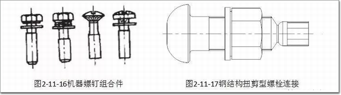 (11)組合件和連接副:組合件是指組合供應的一類緊固件,如將某種機器螺釘(或螺栓、自供螺釘)與平墊圈(或彈簧墊圈、鎖緊墊圈)組合供應;連接副指將某種專用螺栓、螺母和墊圈組合供應的一類緊固件,如鋼結構用高強度(詞條“強度”由行業大百科提供)大六角頭螺栓連接副。