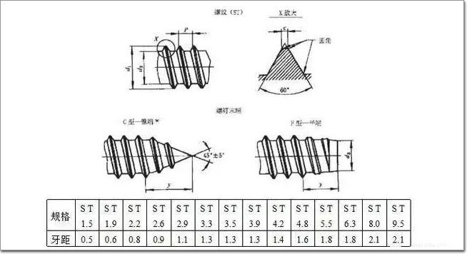 自攻螺紋:是一種寬牙螺紋,有較大的導程。