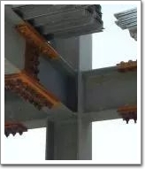 二次灌漿前鋼結構柱腳的圖片(為保護錨栓頂不螺紋用橡皮套包裝)