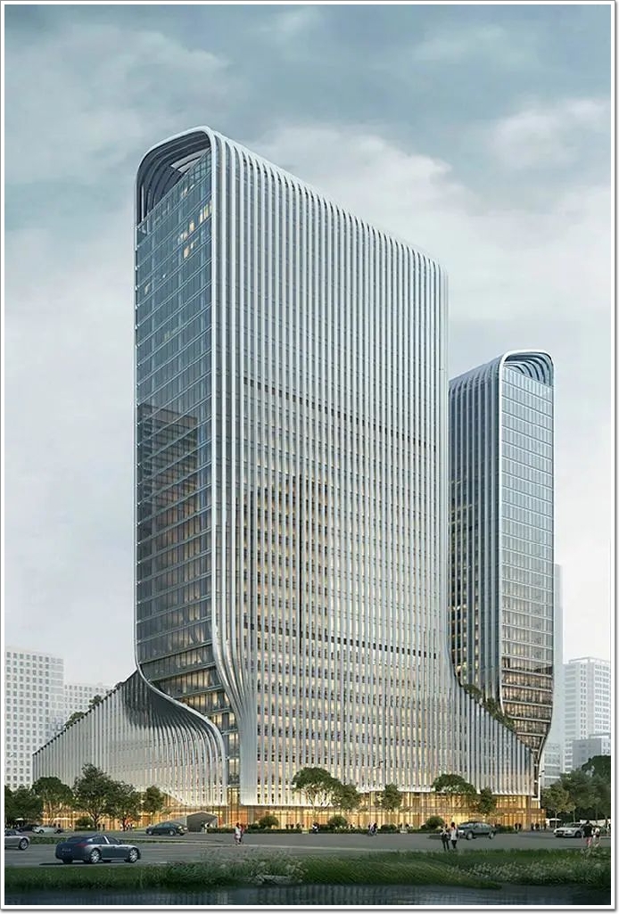 ‘富’有的幕墻——項目主體為兩幢高約145米的建筑,外形不同于普通的盒裝玻璃幕墻建筑,搭配有流線型線條,使建筑造型更具韻律,富有“跳動”感。