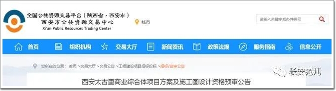 近日,陜西公共資源交易中心官網公布了《西安太古里商業綜合體項目方案及施工圖設計資格預審公告》,項目業主西安騰運置業有限公司對項目方案及施工圖設計及后期配合服務等工作進行招標。