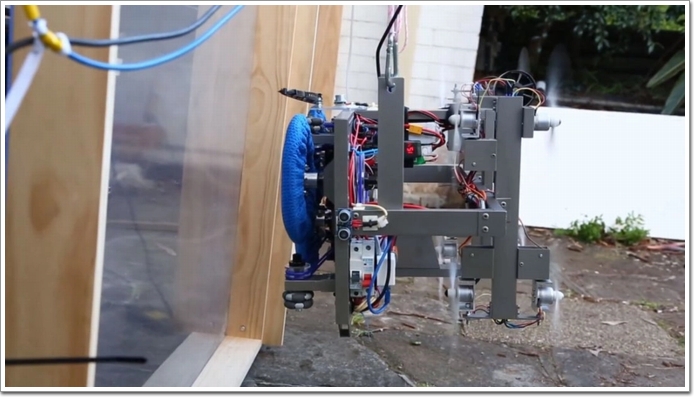 這款“窗戶清洗無人機”配有繩索和電纜,地面工作人員通過計算機控制無人機進行上下移動。在無人機的一側設置有8個螺旋槳,螺旋槳開始轉動后,無人機會被推離建筑物,并移動到建筑物的不同部位。