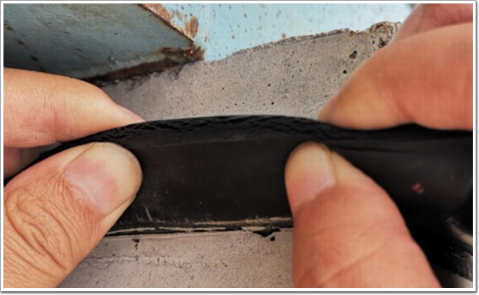 暴曬后的三元乙丙橡膠,已老化開裂并部分熔化粘黏基材