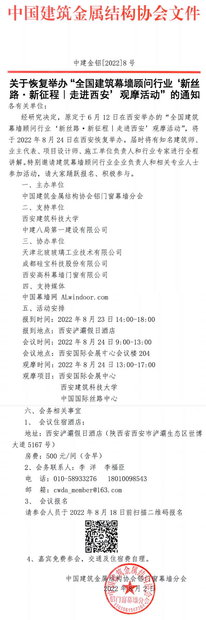 關于恢復舉辦“全國建筑幕墻顧問行業‘新絲路·新征程|走進西安’觀摩活動”的通知
