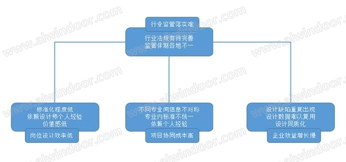在傳統的設計模式下,幕墻設計以分散的、孤立的方式開展。幕墻設計過程重度依賴建筑設計圖紙質量和幕墻設計師經驗,幕墻設計質量難以保證。在項目過程中,因為項目周期緊,設計工作量大,修改頻次高,且圖紙不交圈和版本迭代不及時,導致幕墻設計崗位效率低,設計人員價值感低;而在項目管理過程中,設計、生產、施工、運維各環節相互割裂,專業內標準不統一,過程管理依賴“人治“,缺乏信息系統支撐,項目協同成本高;而對設計企業而言,設計數據難以有效沉淀和復用,設計業標準化程度低,規模化效應難發揮,造成設計企業的利潤呈現逐年下滑的態勢;而從行業看,行業法律法規及準入制度尚需完善,監管體制與企業發展訴求存在錯位, 設計審查機制存在爭議,知識產權及保障力度弱,設計行業監管落實也存在困難。