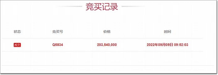 9月9日10時競拍結(jié)束,競價周期為1天,此次競拍,只有1人報名,最終以底價成交。