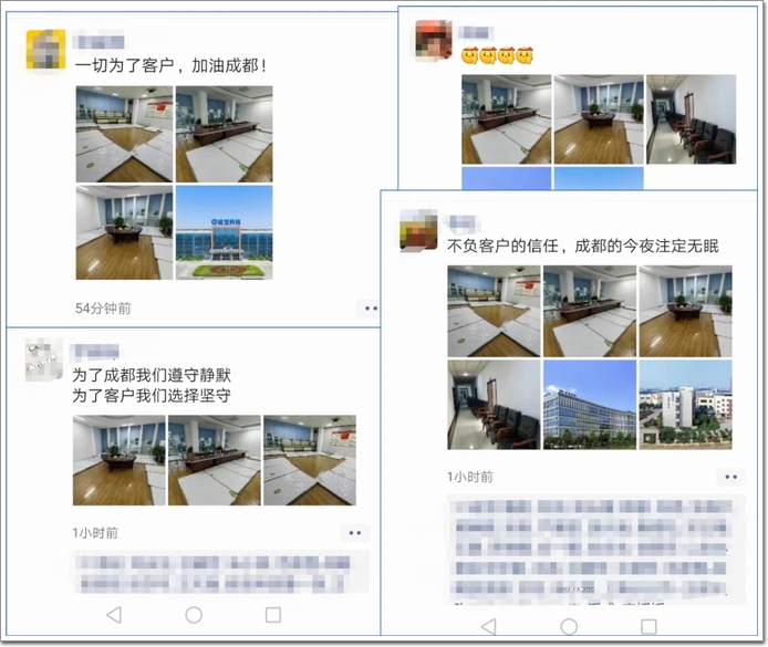 “為了成都我們遵守靜默,為了客戶我們選擇堅守。”