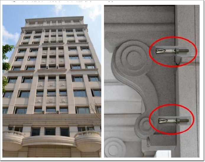 慧魚模擴底錨栓FZA在石材上的應用,已有實際多個案例可供參考,如:臺灣人壽總部、中正紀念堂、蘇州華為研發中心、廣州鳳凰城別墅等。