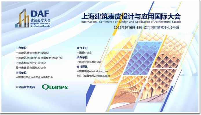 2022年9月6日—7日的兩天,在南京建鄴區南京國際博覽中心,由中國建筑裝飾裝修材料協會、中國建筑材料聯合會金屬復合材料分會、上海市勘察設計行業協會、蘇州市建筑金屬結構協會等主辦,中國房地產業協會產業協作委員會指導,中國石材協會聯合主辦,上海展業展覽有限公司承辦的“DAF建筑表皮設計與應用國際大會”,首次由上海移師南京,與“寧”相聚。