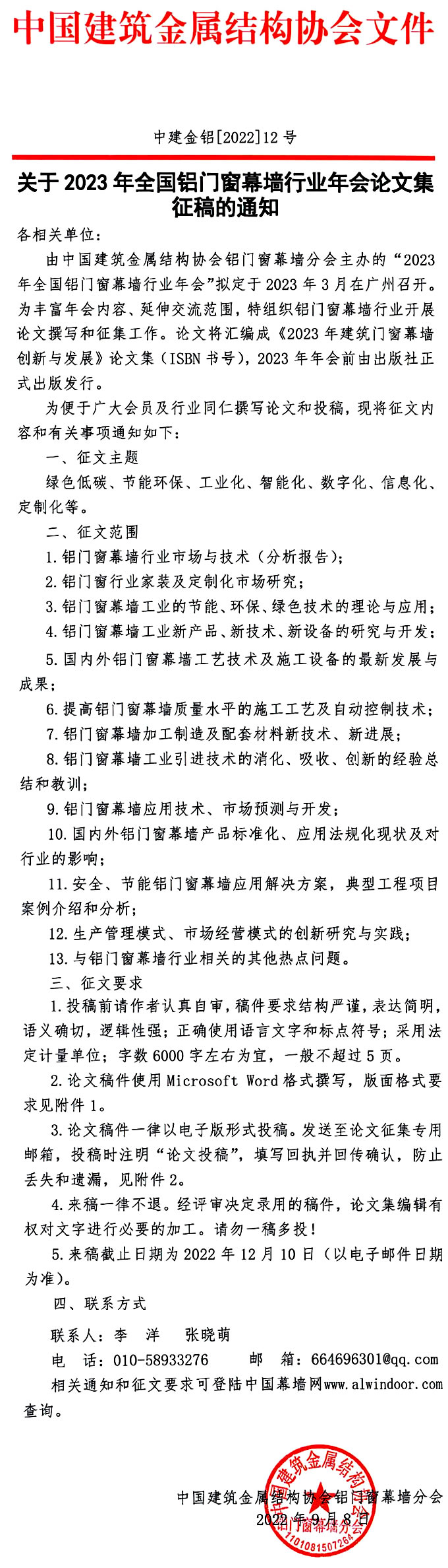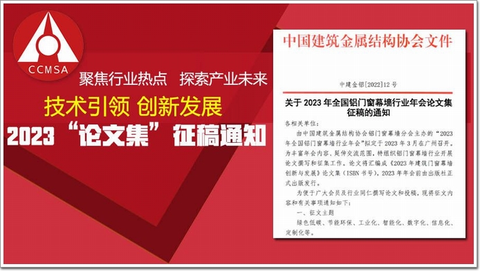 關于2023年全國鋁門窗幕墻行業(yè)年會論文集征稿的通知