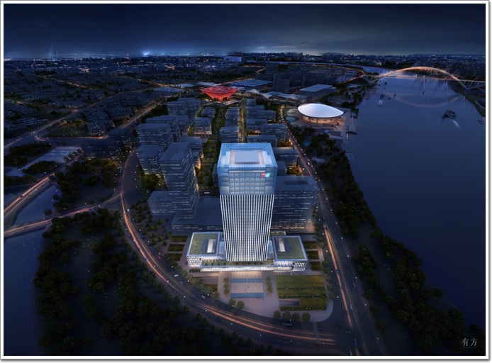 新建的中國銀聯業務運營中心位于黃浦江畔,地上總建筑面積達90000平方米,高150米,建筑組團將為所在新城區增添濃墨重彩的一筆。建筑組團由三座平面(詞條“平面”由行業大百科提供)呈正方型的建筑構成,水平布局上略微交錯,兩棟五層高的裙房分置于高層建筑兩側。水平延伸的玻璃連廊坐落于寬敞大氣的入口大堂之上,貫通了建筑群的三四兩層。