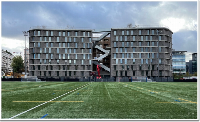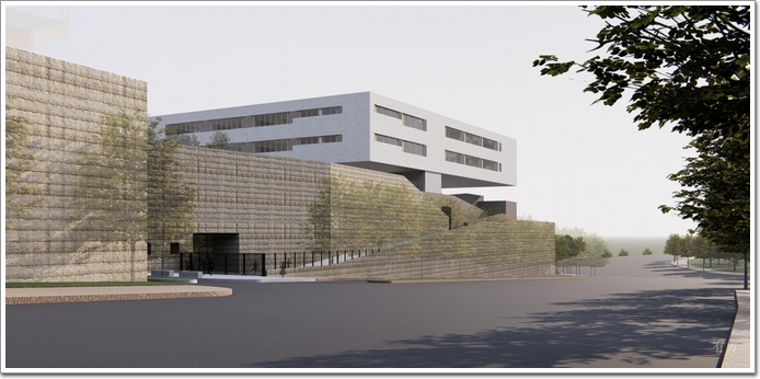 項目在國際大學城的東區,北臨花園和體育場,南側是巴黎市的外環路。建筑采用體現中國傳統的灰磚及作為主要外立面材料,內立面采用木格柵,以此重申中國古代對建筑的定義:土木。