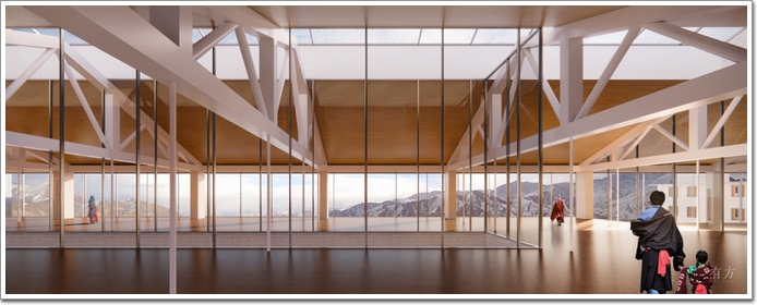 書店選址于小中甸鎮吳公村,由三棟典型的香格里拉地區傳統藏房——“閃片房”改造而成。原藏房為木結構(詞條“木結構”由行業大百科提供),并以夯土墻體作為外圍護結構,F狀木結構保存完好,但是以傳統木瓦作為屋面材料的坡屋頂年久失修,多有坍塌。改造方案盡可能保留了質量較好的木結構主體,并對夯土墻進行維修和加固,同時通過一個鋼結構的輕型陽光板屋頂,來解決內部空間自然采光(詞條“采光”由行業大百科提供)、冬季采暖等問題。