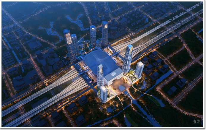 杭州西站整體鳥瞰效果圖 ©SOM