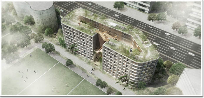 項目位于巴黎十四區的巴黎國際大學城(CIUP)內,這里有超過四十座由不同國家建設的校舍。非常建筑與法國CAAU合作設計的“中國學舍”設有300套獨立寢室和一個可容納500人的文化活動大廳。設計將宿舍建筑圍繞著一個中央庭院形成環形,讓學生的生活在宜人的自然環境中展開。