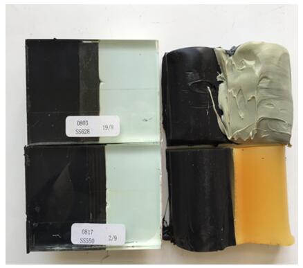 1)由于門窗所用材料日新月異,密封膠無法充分保證對每一種材料均能粘接良好,因此施工前應(yīng)先進行粘結(jié)性試驗(見圖1)和相容性試驗(見圖2),門窗洞口之間的接縫密封可以在施工前將相應(yīng)的水泥砂漿、勾縫劑和外墻清洗劑等材料送檢廠家進行粘接性和相容性測試,而玻璃和窗框之間的嵌縫密封也可以在施工前將相應(yīng)的門窗框材料送檢廠家進行粘接性和相容性測試,防止密封膠與接觸材料反應(yīng)導(dǎo)致起泡和粘接不良等情況,從而預(yù)防鋁合金門窗因上述原因發(fā)生滲漏的情況。
