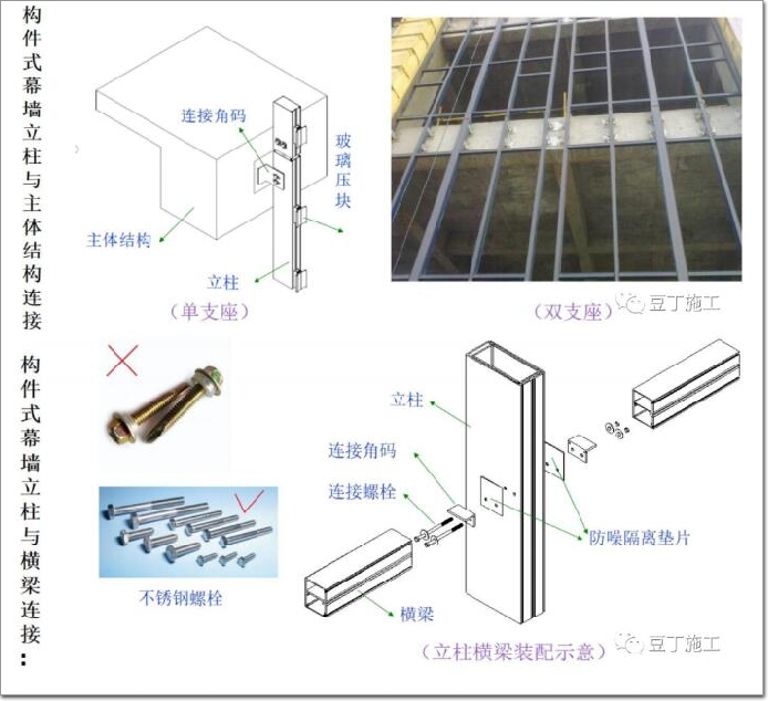 文中提到的10種施工工藝,涵蓋了構件式幕墻、單元式幕墻、點支式幕墻、全玻璃幕墻、雙層幕墻等豐富形式,也包含了玻璃面板、石材面板、進入面板、陶瓷等人造材料面板等不要材料,全面闡釋了建筑幕墻各種類型中的典型施工工藝,并針對結構安全、打膠方式、面板掛接、防火、防雷等做出了經典工藝分析,是一部建筑幕墻施工工藝的簡要大全,更是當前最新的施工工藝及技藝水平展示。