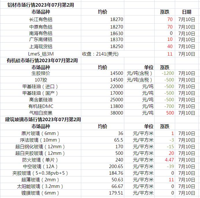 此原材料價格由中國幕墻網收集整理,僅供參考!