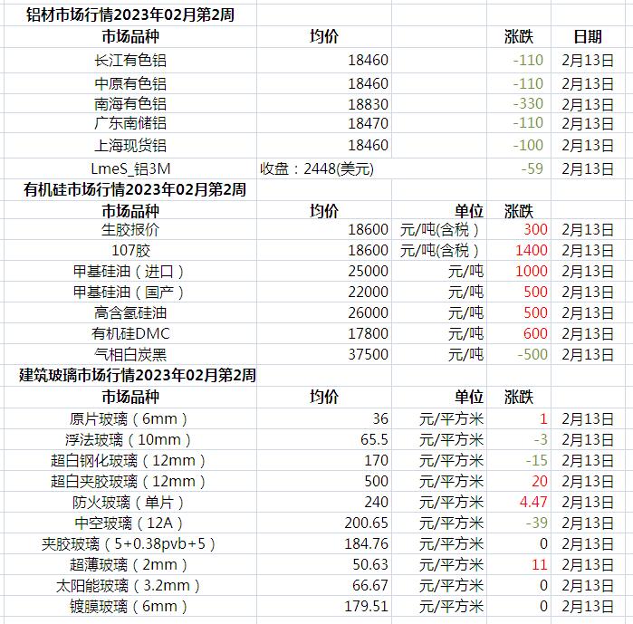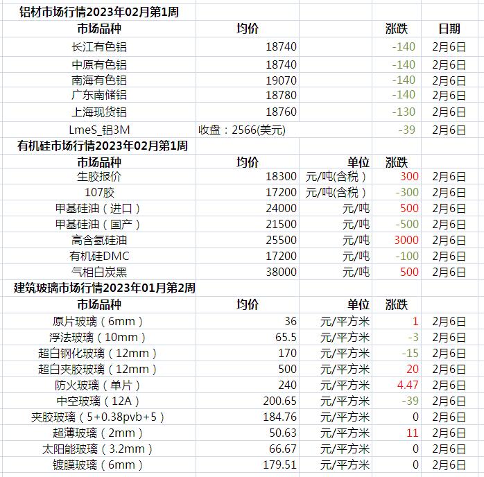 此原材料價格由中國幕墻網收集整理,僅供參考!